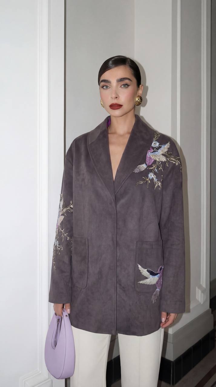 Модель выполнена из мягкой, пластичной натуральной замши с бархатистым ворсом, что обеспечивает приятные тактильные ощущения и элегантный внешний вид.
